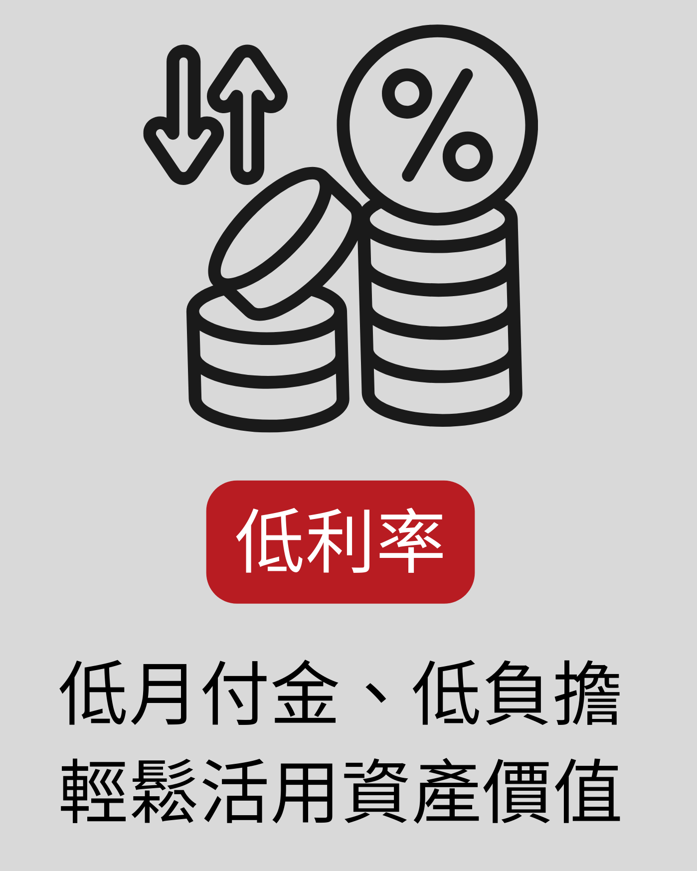 | 聰明靈活的運用各項貸款商品,可降息的長期理債規劃 | 核貸後條件固定,金融機構不會主動提供降息方案 |